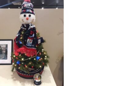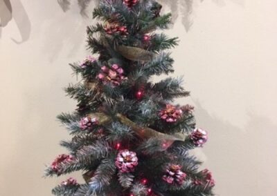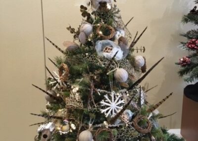 From classic Christmas Santas, angels, stars, and pine cones to hearts, fruit, a clown, and more; even a fish! These vintage glass ornaments of whimsy adorn the tree to help you reminisce of a Christmas past. There is even a pickle hidden in the tree! By Rita Schallou and Mary Jo Smith